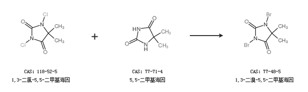 2.通過(guò)1,3-二氯-5,5-二甲基海因和5,5-二甲基海因合成1,3-二溴-5,5-二甲基海因
