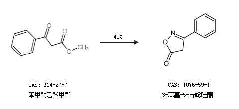 2.通過苯甲酰乙酸甲酯合成3-苯基-5-異噁唑酮,收率約40%;