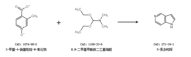 2.通過3-甲基-4-硝基吡啶-N-氧化物和N,N-二甲基甲酰胺二乙基縮醛合成5-氮雜吲哚