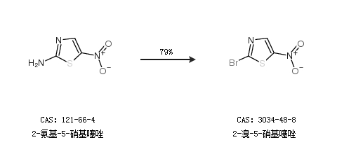 1.通過(guò)2-氨基-5-硝基噻唑合成2-溴-5-硝基噻唑,收率約79%;