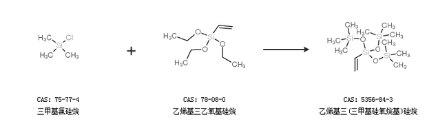 2.通過三甲基氯硅烷和乙烯基三乙氧基硅烷合成乙烯基三(三甲基硅氧烷基)硅烷