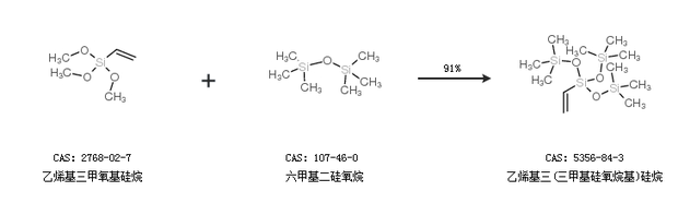 1.通過乙烯基三甲氧基硅烷和六甲基二硅氧烷合成乙烯基三(三甲基硅氧烷基)硅烷,收率約91%;