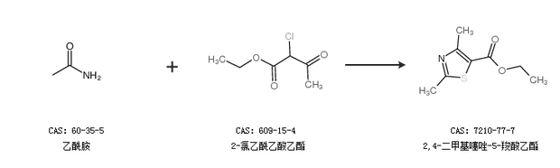 2.通過乙酰胺和2-氯乙酰乙酸乙酯合成2,4-二甲基噻唑-5-羧酸乙酯