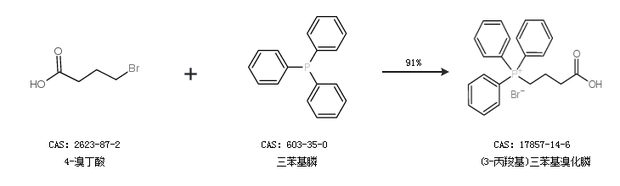 1.通過(guò)4-溴丁酸和三苯基膦合成(3-丙羧基)三苯基溴化膦,收率約91%;