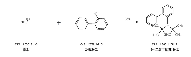 2.通過(guò)氨水和2-溴聯(lián)苯合成2-(二叔丁基膦)聯(lián)苯,收率約56%;