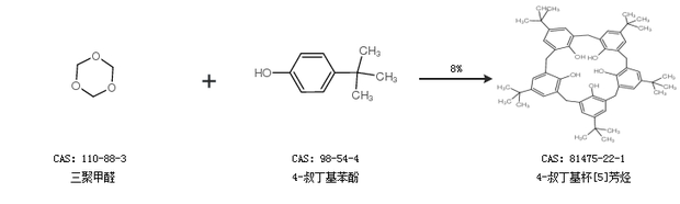 1.通過三聚甲醛和4-叔丁基苯酚合成4-叔丁基杯[5]芳烴,收率約8%;