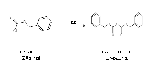 1.通過(guò)氯甲酸芐酯合成二碳酸二芐酯,收率約82%;