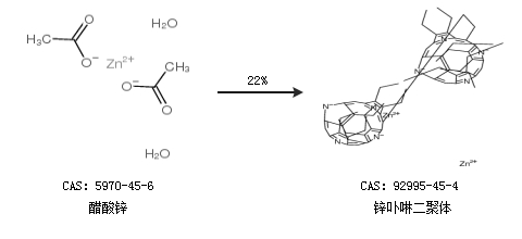 2.通過(guò)醋酸鋅合成鋅卟啉二聚體,收率約22%;
