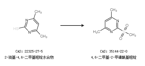 2.通過2-巰基-4,6-二甲基嘧啶水合物合成4,6-二甲基-2-甲磺?;奏?br>