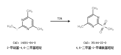1.通過2-甲硫基-4,6-二甲基嘧啶合成4,6-二甲基-2-甲磺?;奏?,收率約73%;