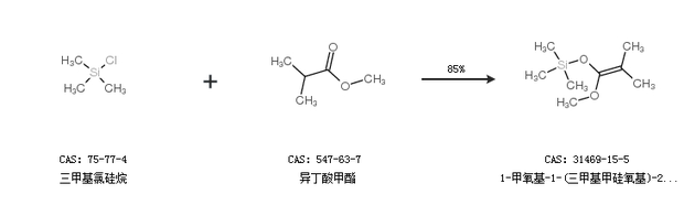 1.通過三甲基氯硅烷和異丁酸甲酯合成1-甲氧基-1-(三甲基甲硅氧基)-2-甲基-1-丙烯,收率約85%;