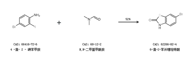 2.通過4 -溴- 2 - 碘苯甲胺和N,N-二甲基甲酰胺合成6-溴-2-苯并噻唑啉酮,收率約52%;