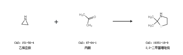 2.通過(guò)乙烯亞胺和丙酮合成2,2-二甲基噻唑烷