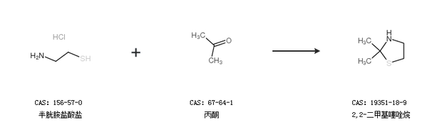 1.通過(guò)半胱胺鹽酸鹽和丙酮合成2,2-二甲基噻唑烷