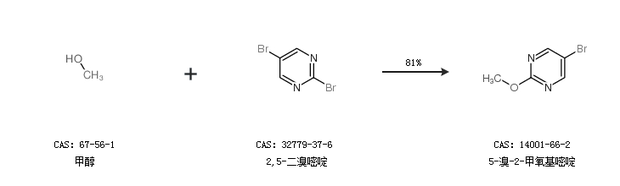 2.通過甲醇和2,5-二溴嘧啶合成5-溴-2-甲氧基嘧啶,收率約81%;