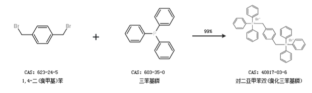 2.通過對二甲苯和三苯基膦合成對二亞甲苯雙(溴化三苯基膦)
