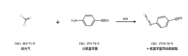 1.通過硫光氣和對(duì)氨基苯腈合成4-氰基苯基異硫氰酸酯,收率約93%;