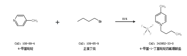 1.通過4-甲基吡啶和正溴丁烷合成4-甲基-1-丁基吡啶四氟硼酸鹽,收率約81%;
