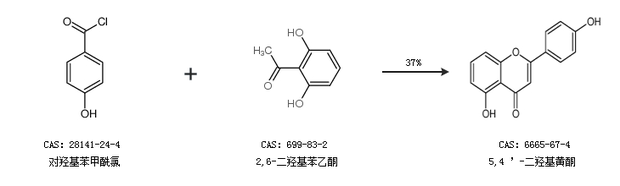 2.通過對(duì)羥基苯甲酰氯和2,6-二羥基苯乙酮合成5,4 ’-二羥基黃酮,收率約37%;