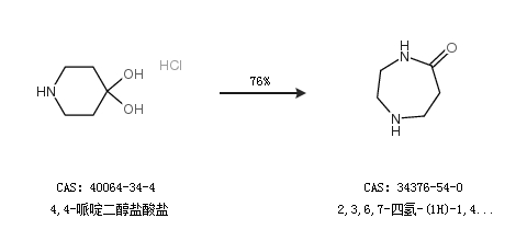 2.通過4,4-哌啶二醇鹽酸鹽合成2,3,6,7-四氫-(1H)-1,4-二氮雜卓-5(4H)-酮,收率約76%;