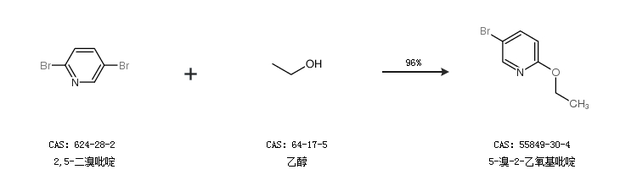 1.通過(guò)2,5-二溴吡啶和乙醇合成5-溴-2-乙氧基吡啶,收率約96%;