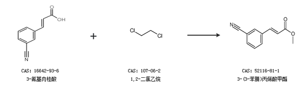 1.通過3-氰基肉桂酸和1,2-二氯乙烷合成3-(3-苯腈)丙烯酸甲酯